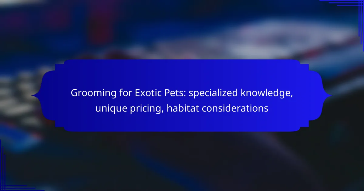 Grooming for exotic pets requires specialized knowledge to cater to the unique needs of various species, including reptiles, birds, and small mammals. In Australia, pricing for these services can range from AUD 30 to AUD 150, influenced by the pet’s species, size, and specific grooming requirements. Additionally, habitat considerations such as temperature and humidity play a vital role in ensuring the comfort and safety of the animals during the grooming process.